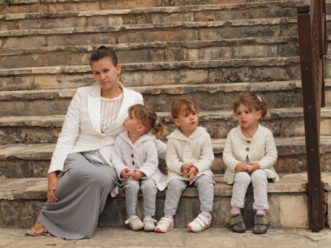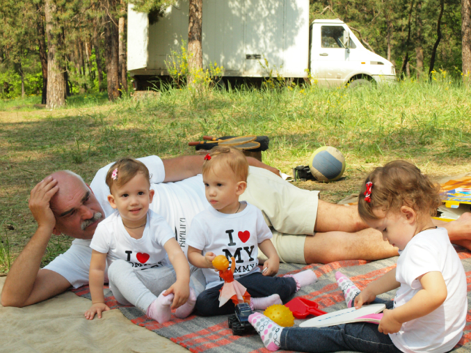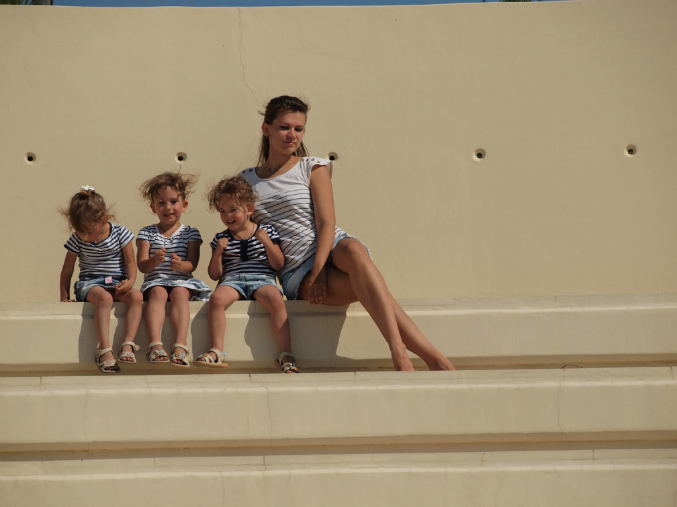 Четверня в упряжке: мама и тройняшки :)