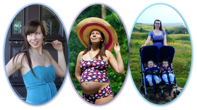 Ну а это я - до, во время беременности и уже с малышами.