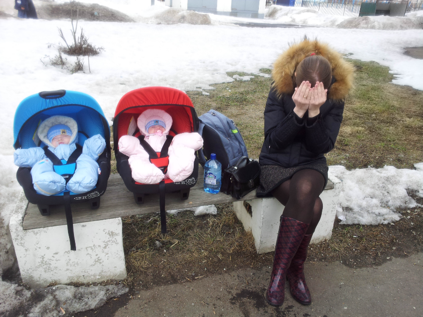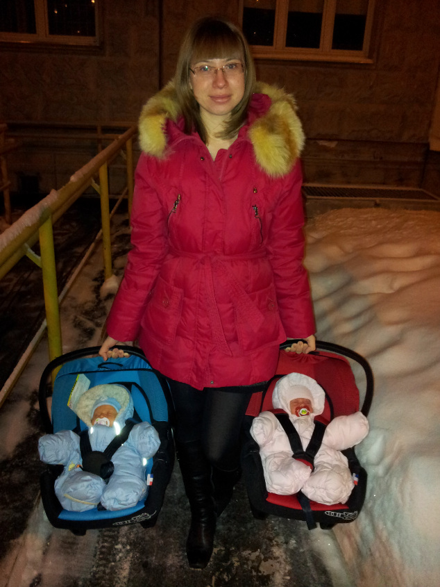 Понятно,просто я видела есть коляски двойняшек,где одна сторона синяя,а другая красная,я думала это ее составляющие))) у нас две раздельных,и одна совместная. По коляскам не путают,но путают по лицам,Соня-мальчик,а Филя -девочка))