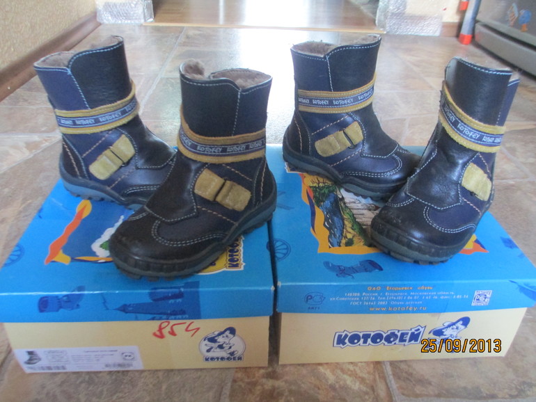 в прошлую зиму, когда с детьми в парке гуляла, познакомилась с одной мамочкой, ее дочке было больше года, но она вообще не выходила из коляски, я подумала, что она еще не ходит, а оказалось, мама жалеет ее ножки и вместо сапожек одевает ей валенки, а она в валенках вообще ходить не может, так что таким малявкам лучше сапожки взять. мы купили демары доги, на липучках, вчера посылочка пришла, оделись легко, на ножке сели хорошо, девочки в них как стали носиться из одной комнаты в другую, было сразу видно, что в сапожках им удобно. взяли размеры 22-23 и вторую пару 24-25, 22-23 им сейчас почти как раз, запас небольшой, но это за счет того что мех объемный, а 24-25 взяли другую модели и резиновым низом, чтоб в ранню весну поносить, когда из 22 размера выростим.