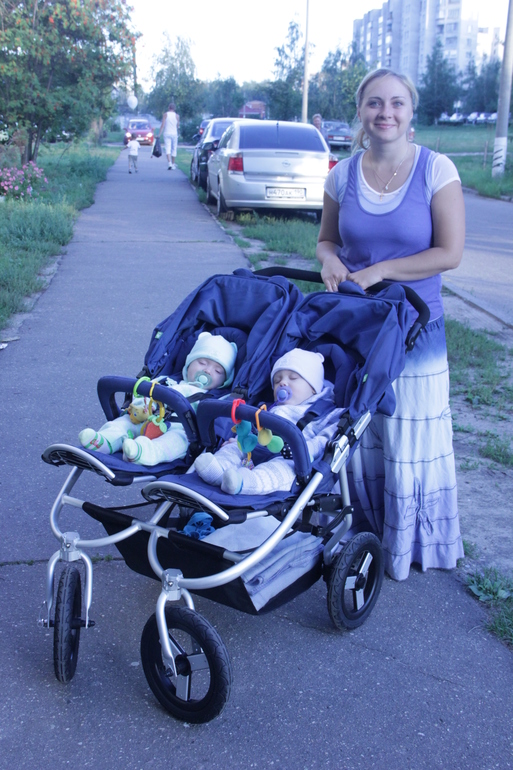 Гуляет с ней даже дочка 8-ми лет, на данный момент она тоже пошла выгуливать сестричек, а мама вот засранка по инету шарится)))))берите, не пожалеете. А в люльках они у нас на балконе тоже замечательно храпят! Ставим их на коробки и свобода, иногда за капюшон подкачиваем,когда просыпаются,очень удобно. Спасибо огромное тому человеку, который нас убеждал долго и горячо, когда перед мной стоял нелегкий выбор))))(привет Настюш!!)