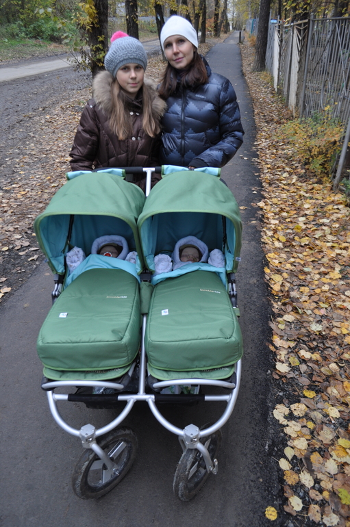 Конечно, коляску тфк можно утеплить при помощи теплых конвертов, но этот капюшон не спасет от непогоды - вариант одевать дождевики или москитки - можно в принципе, решать вам. Я выбрала комфорт, мне повезло, ее сразу купили. Коляска хорошая но прогулка отстой со всех точек зрения и со стороны ее внешнего вида тоже. Это не привлекательная коляска - она выглядит холодной и неуютной! А вот в нашей новой колясочке моим крошкам особенно уютненько, у каждого как два гнездышка свито