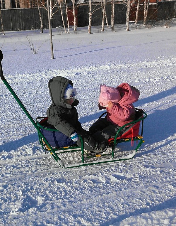 Прогулки с малышамиПлевать на то,что надо одевать детей по часу каждого, плевать на то,что сама как свадебная лошадь - голова в цветах,а ж..па в мыле, плевать на то, что через полчаса ног от мороза не чувствую, НО,НО,НО!!!! Девочки,я еще ни разу за год и почти 8 месяцев не получала ТАКОГО удовольствия от прогулок с детьми!!!!!!!!!! снег выпал,легкий морозец, снежинки с неба,санки двойные - невесомые!!!...красота! мы и по сугробам, и снежную бабу лепим, и лопатками снег катаем, и с горки на санках...не замечаю,как по 2-2,5 часа на улице гуляем!!!! и не мерзнем, очень активничаем!!!! приходим румяные,довольные,голодные!!!!)))))))) и самое главное,я впадаю в детство - нравится все вокруг, и самое главное,появилось необъяснимое желание и ожидание Нового Года и Дед Мороза, как в детстве, от души, искренне и наивно,что все измениться к лучшему..................давно такого не было,лет 5 точно.....ну и мой шедевр сегодня,извините, снег не мокрый,что получилось, то и имеем),но дети радовались)))))))