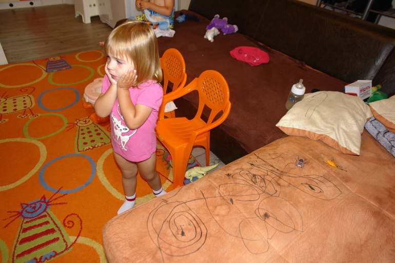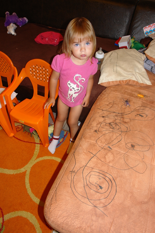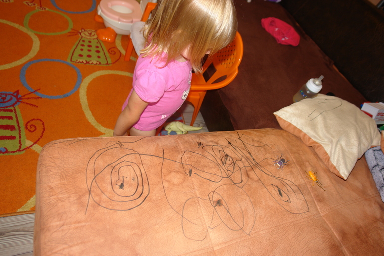 Я стелю на все диваны красивые простыни...мы рисуем. Мамка выкинула