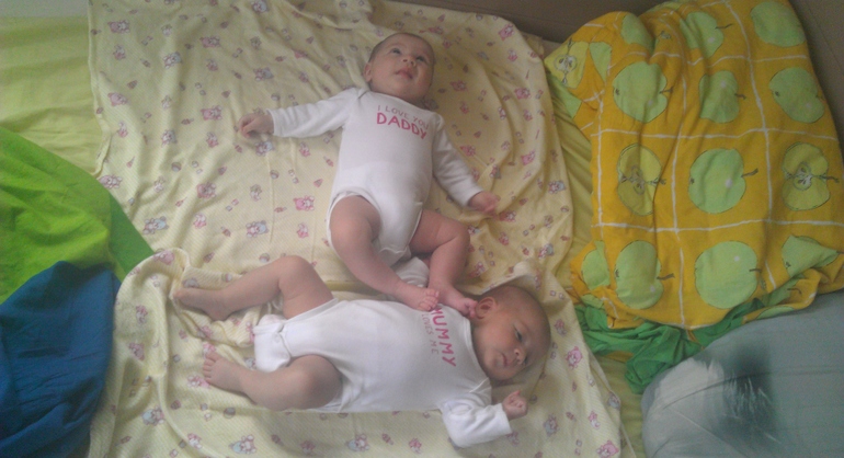 Двойняшки до 1 годаВот думаю я, интересно, как потом, когда постарше они будут, можно ли их будет оставлять вместе хоть ненадолго, без последствий... Сейчас нам только два месяца, но Даша все время норовит положить на сестру то руки, то ноги..Соня не возражает..