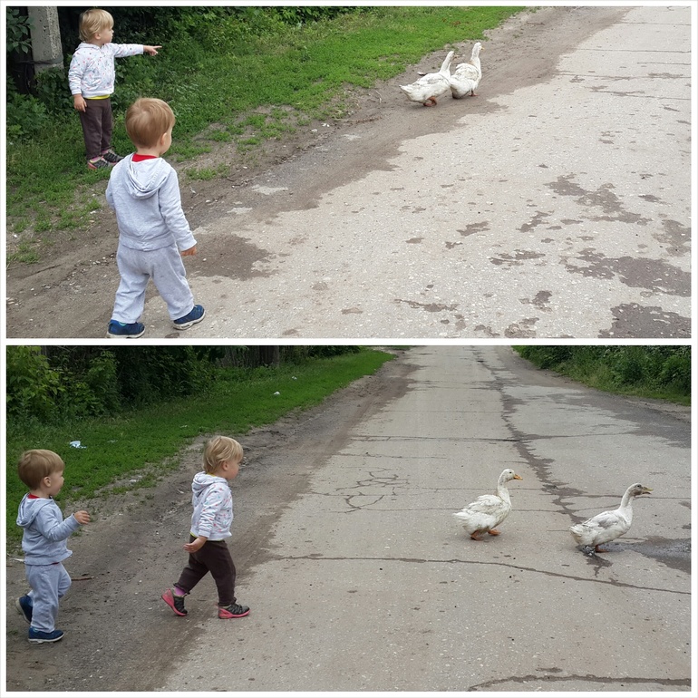 Выезжали несколько раз к друзьям на дачу и к родственникам в рязанскую область, самая классная сельская забава это гонять курей и гусей)))