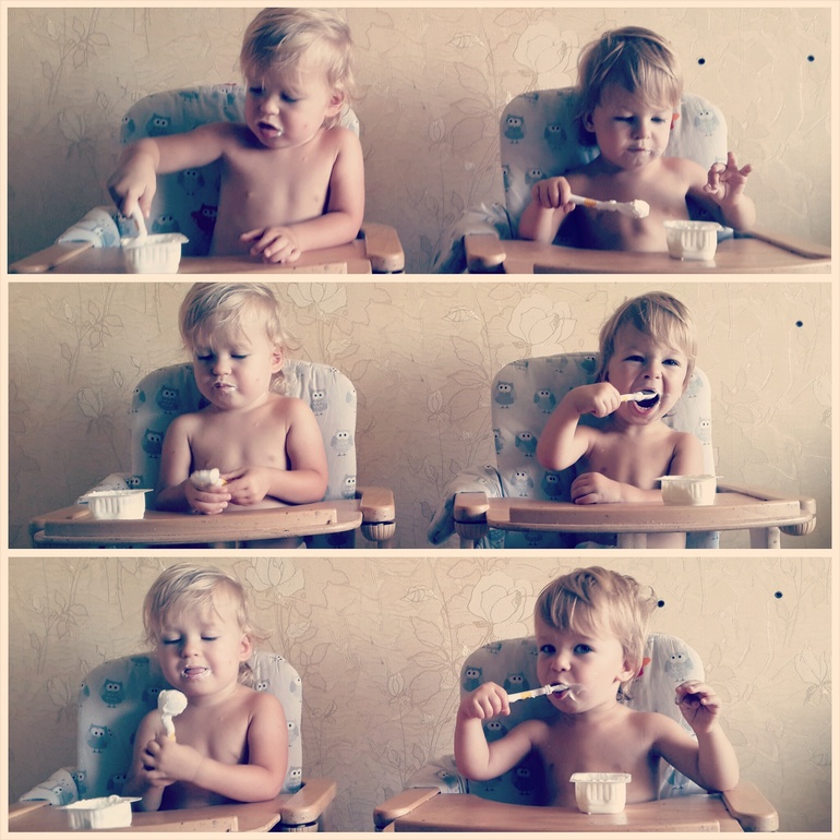 Наконец-то начали есть сами, все, даже суп, если им вкусно то они еще и очень чисто едят, стараются, Дрон в этом плане более ленивый и регулярно просит чтобы я его кормила, после недели холодной войны, к которой подключился папа (а с папой не забалуешь) он осознал, что либо он ест сам либо никак, но его нужно контролировать иначе он будет отвлекаться на каждый шорох или на каждую пролетающею муху и напрочь забудет о еде под носом.
