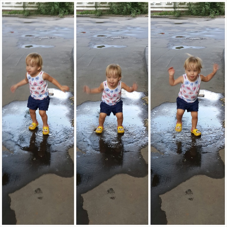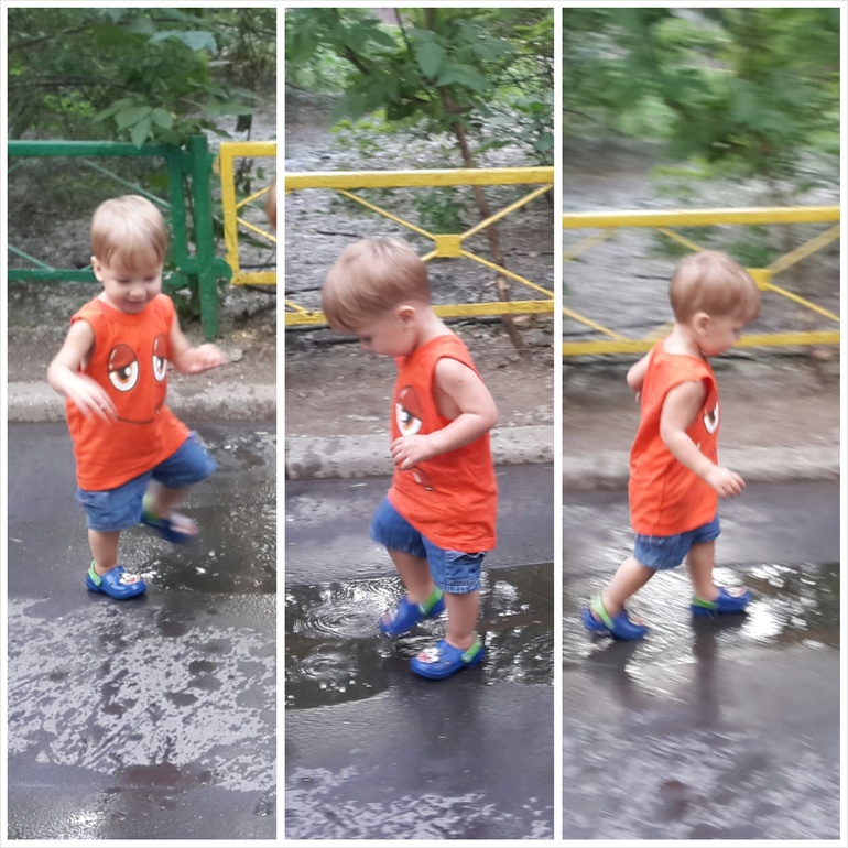 На прогулке самое любимое, если оно есть - это лужи и лужицы, по этому после дождя специально идем гулять и охотится на них предварительно одев кроксы))