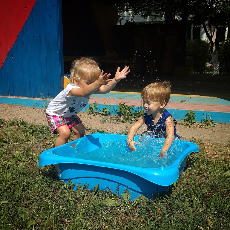 Недавно гуляючи по эаре после занятий наткнулись на небольшой бассейн с водой, это было нечто, визгу было о-го-го)) а счастья и того больше)))