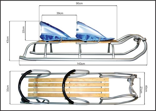 Обычные советские санки + мягкая теплая сидушка. Сначала на одних вообще возили (2 раза за зиму), потом прицепили вторые на вторую зиму. Катает конечно в основном папа, потому как тяжело.