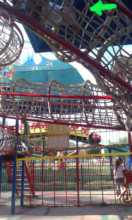 Моя туда полезла как только поставили Альпийские горки , пару лет назад. Я до сих пор помню, как стояла внизу и у меня были 2 мысли: главное не заорать самой и если что, то я сама по металлическим осям полезу. Но ничего, обошлось. А вот сыну совсем не интересно