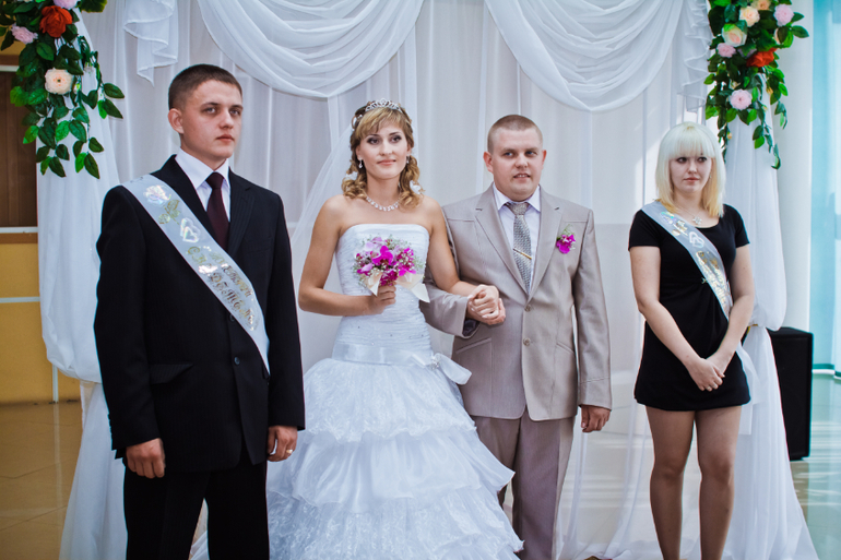 у меня просто таких нетА какой зал... И папа ведет невесту.. Как в сказке!!!!!Муж очень изменился, на свадьбе такой еще паренек, а сейчас уже мужчина!)А ты нет, такой же девочкой тоненькой и осталась!!!!! Красавица!!!!С подругой, конечно, плохо получилось, но может еще сможете поговорить и обсудить.