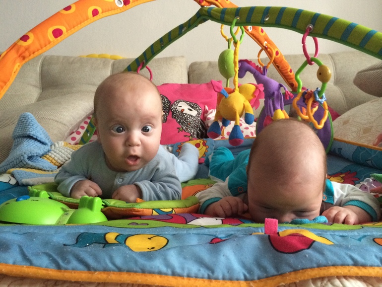 Я тоже не всегда на твоих фотках различаю, где какой малый! Кажется, что по складочкам они совсем одинаковые крепыши :)))Выздоравливайте и не бойтесь соплей, они по осени у всех!
