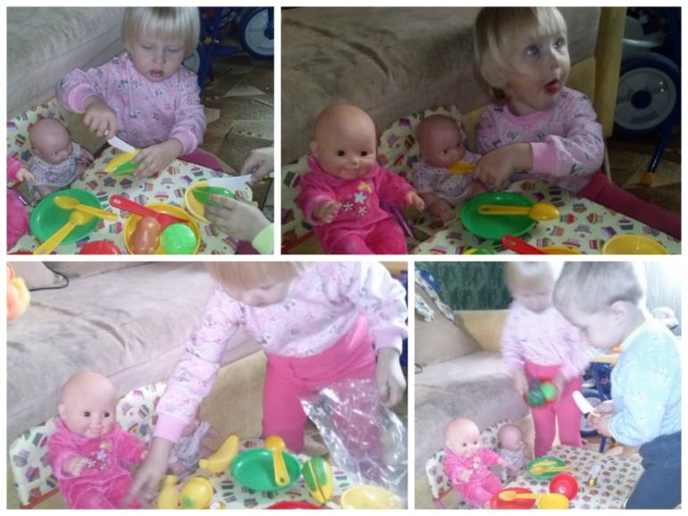 Здорово! Такие все занятые.Ксюш, я гляжу у вас столик со стульчиками игрушечный, да? Ну и как он Варе? Часто кукол и зверят за него рассаживает? Я все думаю, что своим на 2 годика подарить...