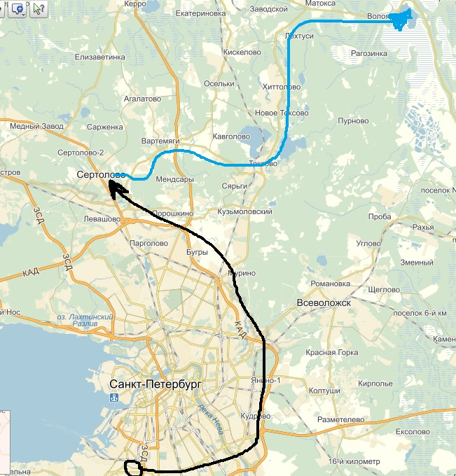 Однажды, мама нам сказала что есть такое чудесное озеро,там народу нету, а вид то какой прекрасный. Ну мы и поехали. Сначала (черная стрелочка) мы от дома доехали до мамочки, потом поехали (синяя стрелочка) о том что мы проехали поворот и можно сказать дважды проехали путь (я умолчу) приехали туда.... А ТАМ......