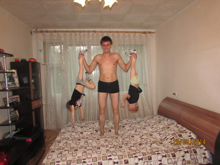 Наш папка силач.