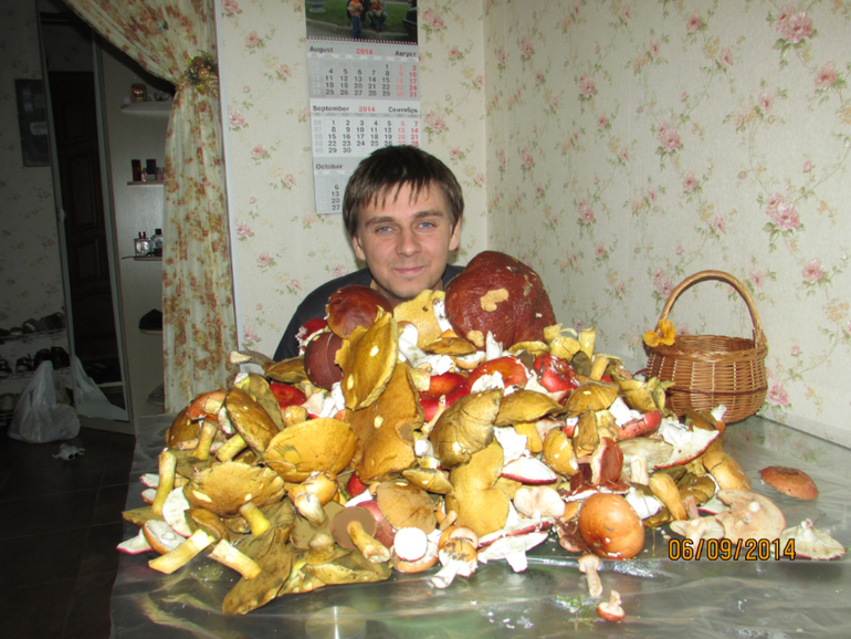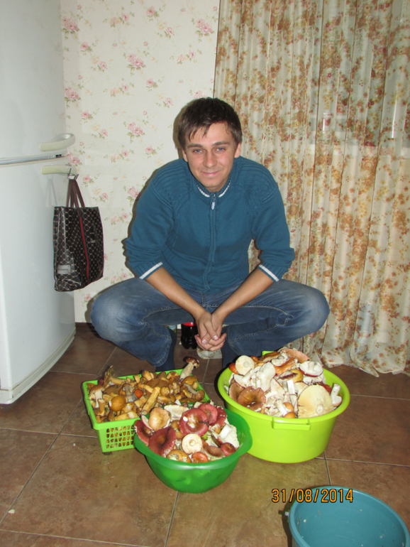 Это муж (больше для понтов, так как две недели назад, друзья его позвали за грибами, поехали за 150км от города, в итоге приехали, походили, развернулись ни с чем и поехали обратно) а тут за 12 км от города и ВОН сколько.