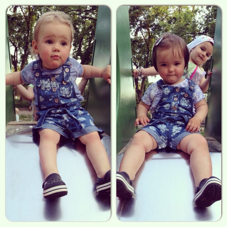 Вот и пролетело лето... К сожалению, ситуация в стране нам не позволила попасть на море, но мы не теряем надежды попасть к морю осенью. Провели мы это лето на асфальте:( но зато у нас была прекрасная возможность начать занятия в школе раннего развития:)) девочки уже могут радовать меня умелками: складывать сложные пирамидки, танцевать, есть ложкой, кататься на беговелах и горках, лазить на спортивных комплексах и т.д! Полина особенно активная, так что в 1,7 года мы идем на ролики!!!!! Вот так то)))) девчёнки активно пополняют свои словарный запас...книжки у нас в фаворе!!!! Мультики мы смотрим самостоятельно, Ох уж эти дети прогресса)))) говорить о них я могу вечно... Правда без расстройства не обходится тоже:( Варя оказалась нытиком еще тем!!! Мнительная и впечатлительная она у меня барышня!!! А в целом... Я научилась распознавать желания, капризы и призывы!!!