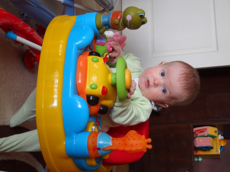 Клевые у Вас детишки . Корабль вообще супер ! Мои тоже сначало вставать стали где-то в 6,5 -7 месяцев, а сидеть в 7,5 -8 начали. кушать с каждым днем становиться проще, но иногда еще капризничают.