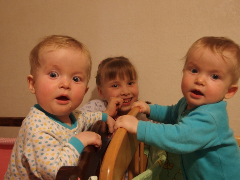 Ну вот как то так мы и живем, радуемся каждому дню! Очень счастливы что у нас есть близнецы, ведь это чудо. Они такие милые, теплые мягкие и молочком пахнут!!! и такие хорошиееее. Сейчас наверное самое приятное время, когда еще не ходят и не крушат все вокруг, но уже человечки такие эмоциональные))))))