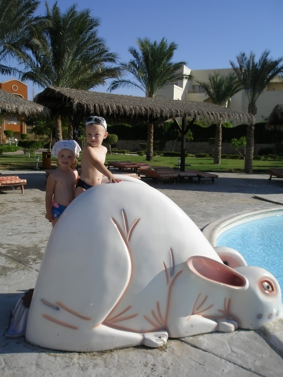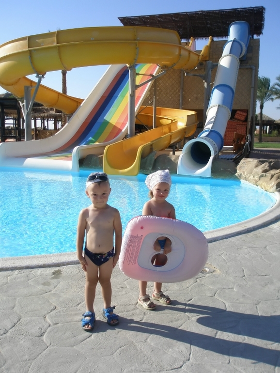 Все прошло отлично! Для первого опыта вполне! В комнатах убирались каждый день, на территории чисто, пляж чистый. Море - сказка бирюзового цвета с рыбками и крабиками. Столовая одна. За 13 дней блюда поднадоели, но это мелочи. Для детей 2 каши утром, яйца, в обед 2 супа, вечером картошка-макароны и филе курицы отварное. Огурцы, помидоры дольками. Вполне накормить можно. Отравлений не было, мы не пили местную воду и соки. Покупали в магазине. От Хургады 35км, по бокам стройка и пустыня. Нет городской суеты, нет торгашей. Есть на территории пару магазинчиков с бешенными ценами. Кому надо, вполне можно и до Хургады доехать. На территории отеля все есть - 2 детских басейна с дет.горками, аквапарк, детские площадки и детский клуб. Анимация отличная. Есть клуб для деток от 4х лет. Есть дайвинг центр. Мне понравилось, что нет пристани и всякие яхты и катерки причаливали на соседней территории отеля. В отеле русские, украинцы и поляки, и чуть арабов. Все с детьми. Чисто семейный отель. Тихо, спокойно. Заход в море отличный. Коралов нет. Они за буйками. Спа сгорел ещев начале лета, еще не отремонтировали, так что и хама пока нет.