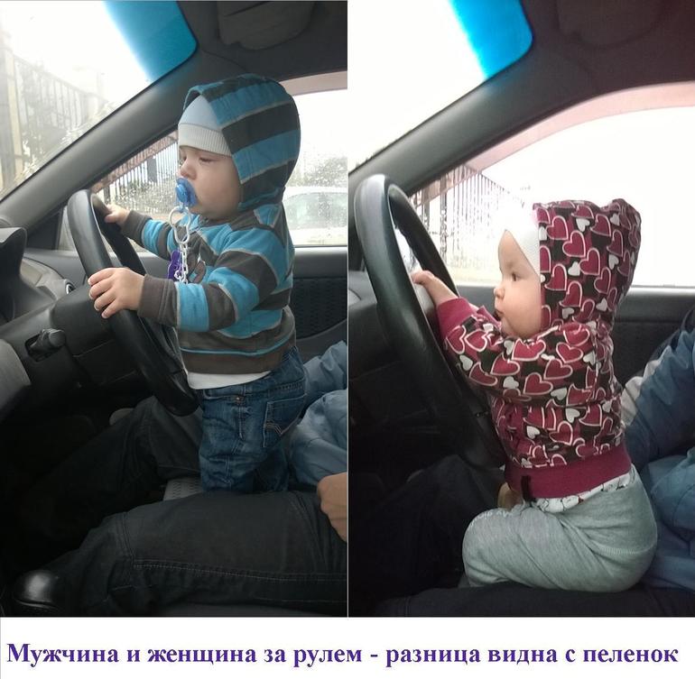 Позитив =)Ездили мы как-то с мужем по делам по городу, естественно, с детьми. Дети проголодались, закапризничали. Мы остановились и начали срочно исправлять ситуацию: пока я кормила одного, папа развлекался со вторым. Особенно понравились дворники (на улице шел дождь). И руль понравился очень. Первым за руль поставили Диму, потом Соню - и тут мы поняли, что разница между водителем-женщиной и водителем-мужчиной очевидна :)