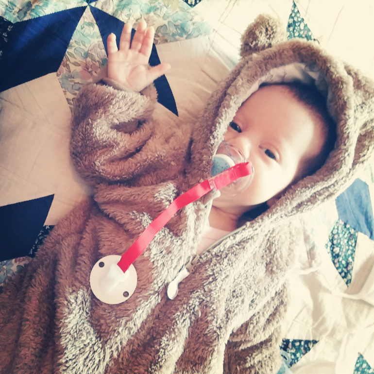 И, кстати, ночью я тоже стала их одевать в легкие комбезы с капюшонами и закрытыми ручками, они стали лучше засыпать и дольше спать, видимо все-таки нравится им пока ограниченность движения, а то ручками себе обычно не давали заснуть)