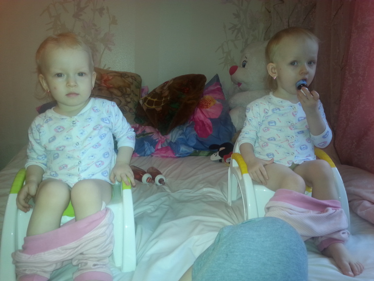 )))) А так и выгулять меня не кому((( Нет поверь не надо 4 глаза и 8 рук!!!! конечно тяжело очень Но мысль о том что они твои детки все заменяет))) Пока маленькие были качала на двух руках , потом подушки на ноги))) Потом туська на руках а Люша в кроватке (Туся на руке точнее а Люшу другой качаю рукой кроватку!!! Не сложно))) Ведь не было одного ребенка так и сравнить с не чем))) Как дела?