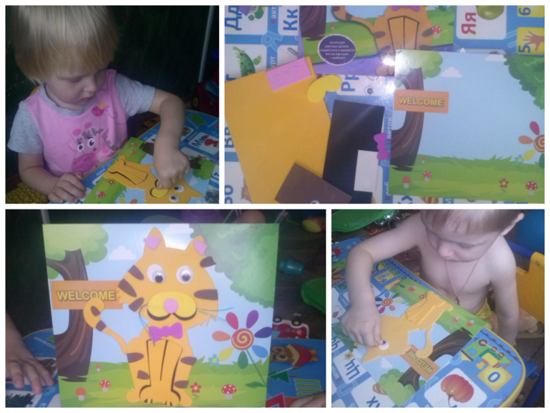 1. Мы очень любим наклейки, их у нас множество, поэтому мы клеили, клеили , и клеили, повторяя при этом цвет, название, форму и величину. Собирали пазлы, играли в лего, находили место жительства на карте льву, панде, слону и жирафу.
