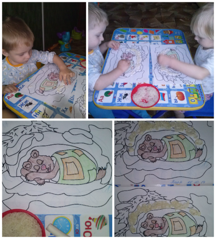 3. Медведи, сначала мы осудили что мишки кушают мед, вспомнили винни Пуха, а потом перешли к тому что зимой мишки спят в берлоге и сосут лапку, это вызвало кучу смеха и эмоций, что мишки сосут соску)) Берлогу мы делали из пластилина и риса.