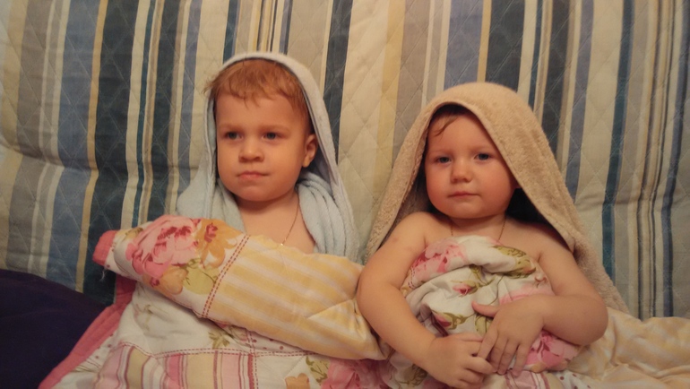 купаю их вместе , Софья водоплавающая у нас) ныряет, как на горке катается по скату ванны)