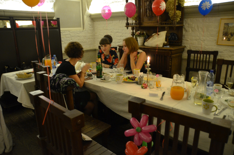 Было очень интересно и приятно наблюдать как подтягивается народ на встречу, со стороны было не отличить "новичков" от "старичков", было впечатление что все друг друга знают уже много лет, некоторые девочки рассказали нам как они познакомились по пути от метро в ресторан узнав друг друга по "цветам"