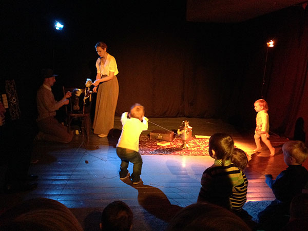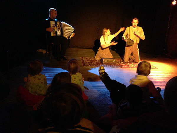 В спектакле участвовали два актера, баянист и три жутковатого (на мой вкус) вида куклы.