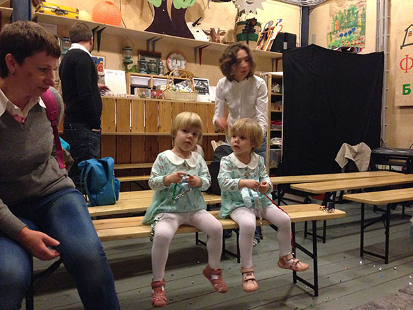 Итог у нас такой: детвору спектакль не очень впечатлил, как впрочем и меня. Хотя справедливости ради отмечу, что актеры старались. Половину представления дочки сидели на своих местах и сами участвовали в интерактиве. Вторую половину просидели рядом со мной и в хороводе только с мамой согласились поучаствовать.