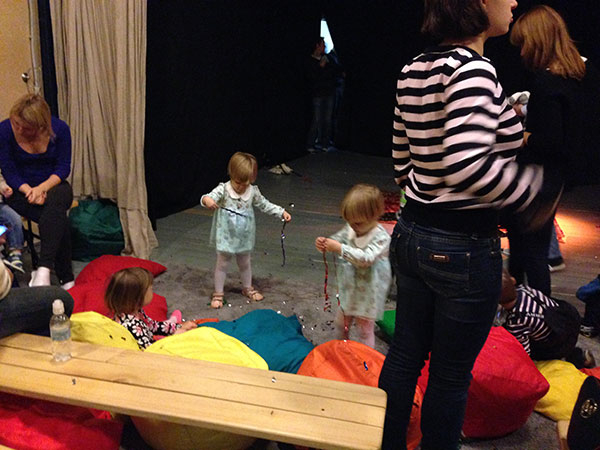 Когда я спросила у дочек (уже в машине после спектакля) что им понравилось больше всего, они ответили "блестяшки". Наверно, хлопушка с разноцветной фольгой в конце представления понравилась всем детям. Мы эти блестяшки даже домой привезли :))