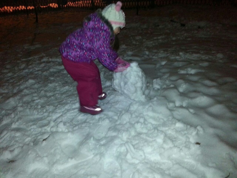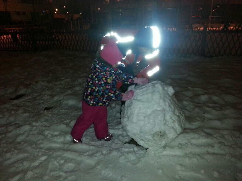 Но мы успели немного поваляться в снегу и слепить снеговика!