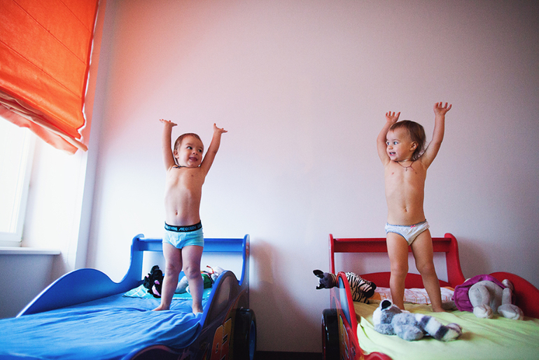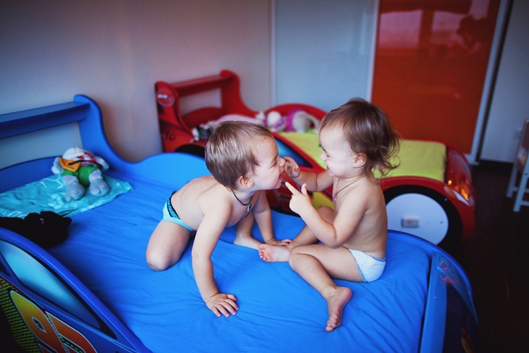 Какие взрослые уже малышата!Кроватки-обалденные!Да как им хорошо вместе!)Все жду когда мои крошки будут такие дружненькие)Пока что трепят друг-друга за волосы,неосознанно,но правда им весело все равно вдвоем,даже сейчас(нам почти 10 месяцев))