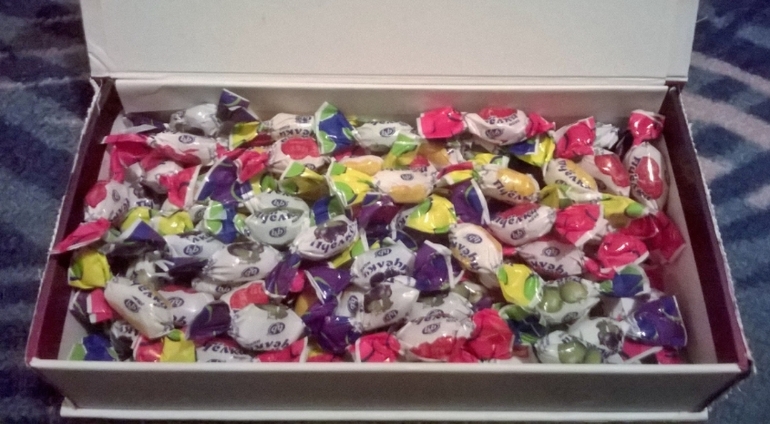 Начать я решила с того,что для души(я была уверена,что открою только его и тот,который до меня)) в нем оказалась шкатулка!ручной работы,такая прелестная,такая красивая!я до безумия уважаю и ценю ручной труд,потому что это бесценно,это то,что я тебе никогда не смогу сделать,в силу своих фигпоймиоткуда растущих рук. Открыв ее,я прям запищала,шкатулка до верха наполнена конфетками ,такими яркими,такими вкусными(я сразу одну схомячила),а сфоткав ее,носилась по квартире и придумывала куда поставить эту прелесть,в итоге законное место ее теперь на барной стойке,с деревянной подписью: "От души",обязуюсь наполнять ее по мере опустошения))