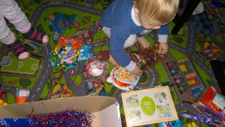 А подарков внутри было видано-не видано, ну очень МНОГО :) дети бегали и доставали бесконечно их, мы с мужем только удивлялись, какая же красота внутри и казалось, что посылка без дна :)))