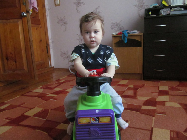-Ромчик ходит во всю, Тёмочку на машине катает. А Тёмка сидит как принц