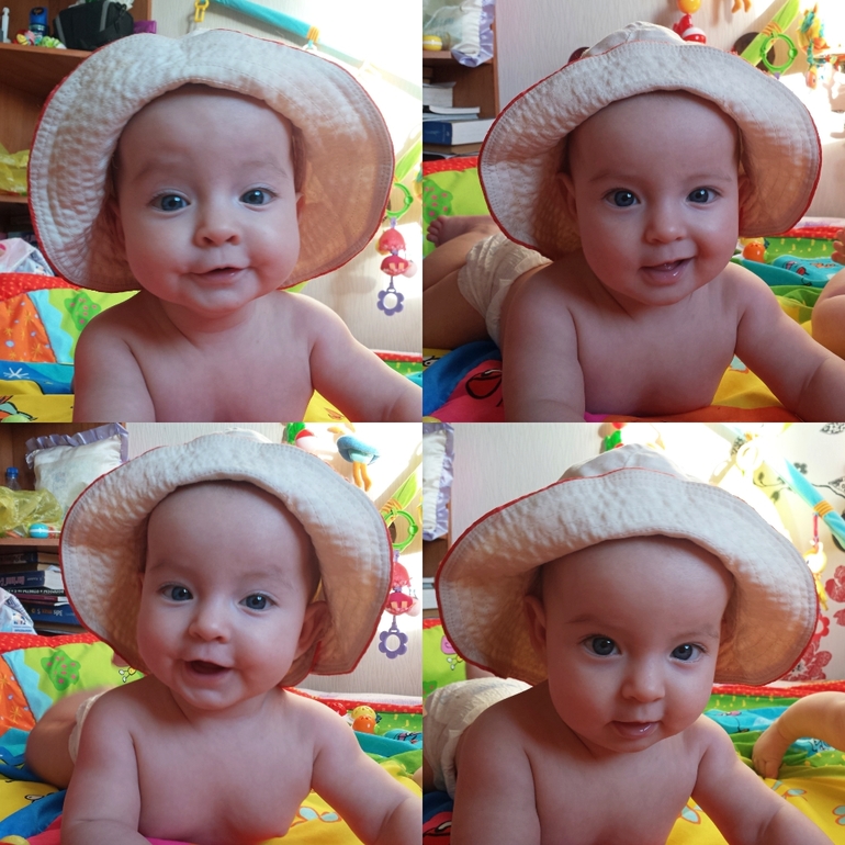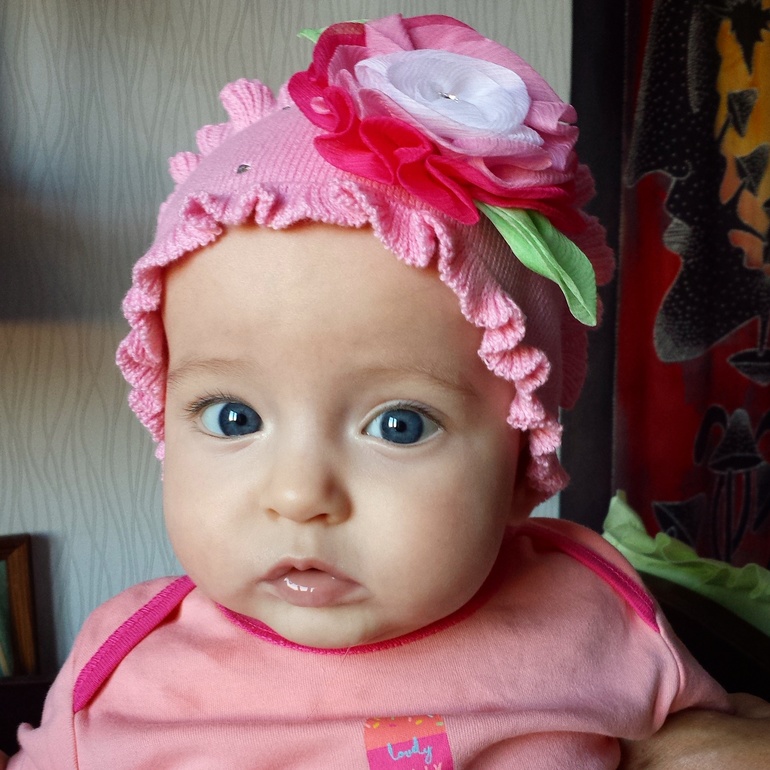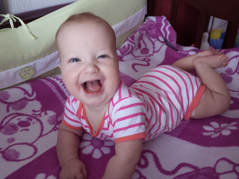 она же Полюсик, зая и солнце. Иногда, за глаза, называем Аполинарией)). Мы очень, очень любим кокетничать, воображать и строить глазки, а так же уже во всю кружим вокруг своей оси, ползем назад и пытаемся встать на четвереньки. Играем в погремухи. Иногда, когда не видит маму может долго лежать на пузике и разглядывать свои руки или что в них. Умей говорить, может чего бы и бубнила себе под нос. Стоит мне попасть в поле зрения все хныки или улыбка во все десна