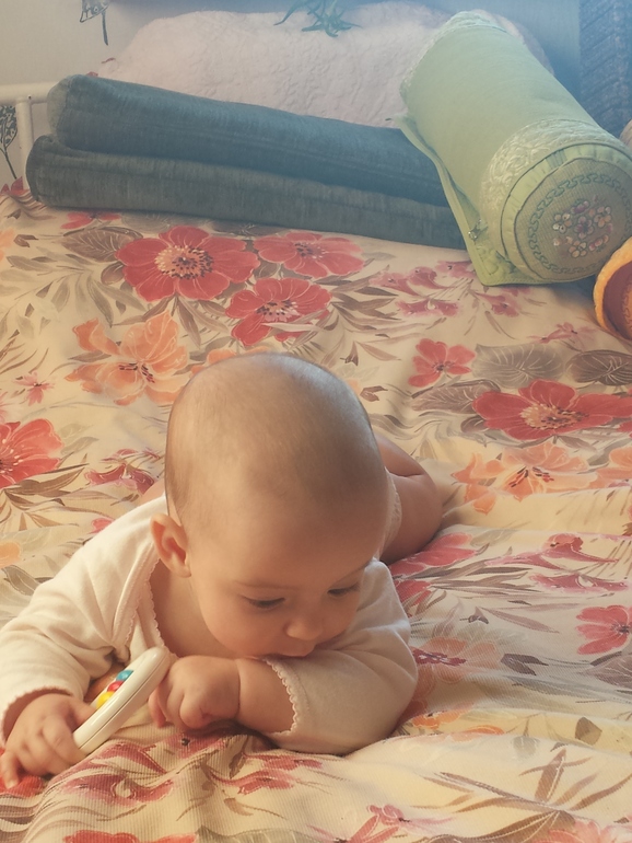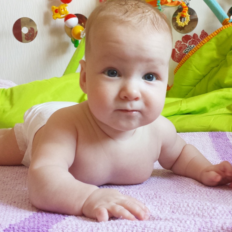 . Тоже может замечтаться и не замечая меня лежать и играться сама с собой. Естественно пока я не в поле зрения. Сразил нас, недавно, небольшой диатез