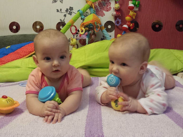 . Не верю, что моим крошкам пол годика. Мне кажется, мы растем в геометрической прогрессии. Вроде вот, были крошки, ан нет, уже воображули, шантажистки, красотульки, умницы, ну и иногда капризные пупсы. Вес допишу завтра, сегодня забыли взвеситься. Но уже ого))) тяжко мне их тягать. Живем все так же в режиме и на ГВ только. Скоро начнем вводить прикорм...ехуу))