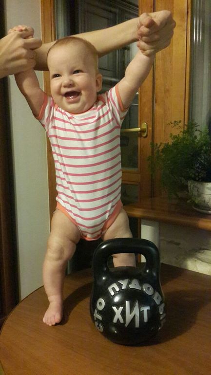 Массажистка говорит, что скоро поползет наш живчик и сядет.