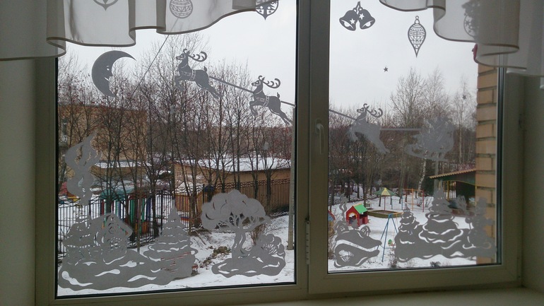 Вместе с детьми и для детейКак и в прошлом году, решили украсить окна в группе в садике силуэтным вырезанием - вытынанками.