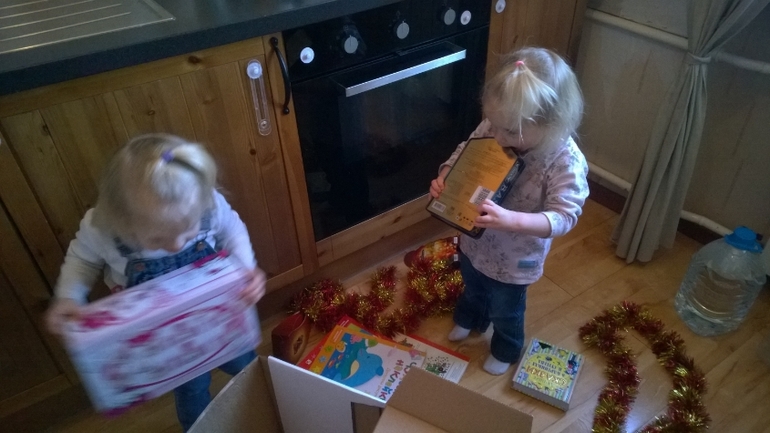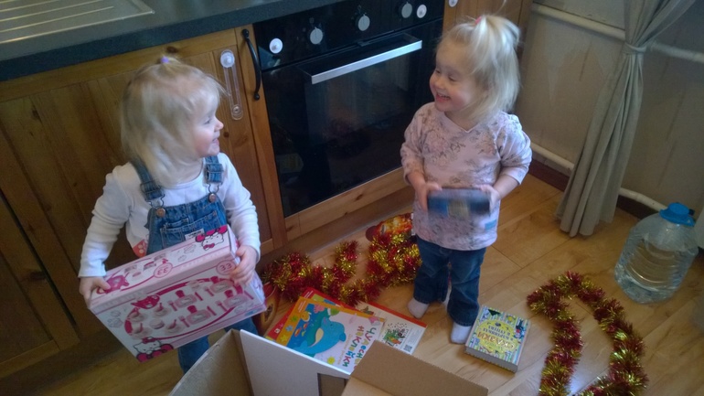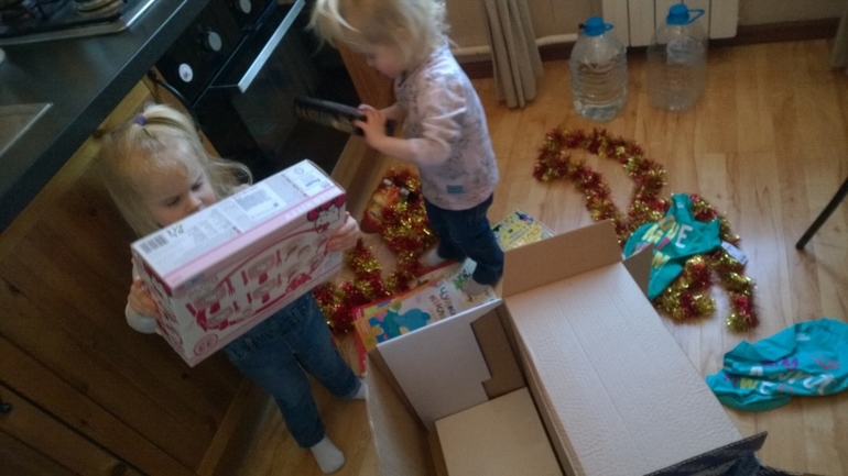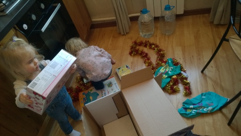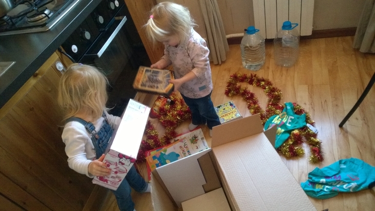 Я поначалу наивно думала спокойно все открыть, пофоткать... Но девки, придя с прогулки, быстро нашли коробку и вскрыли чуть ли не зубами )))