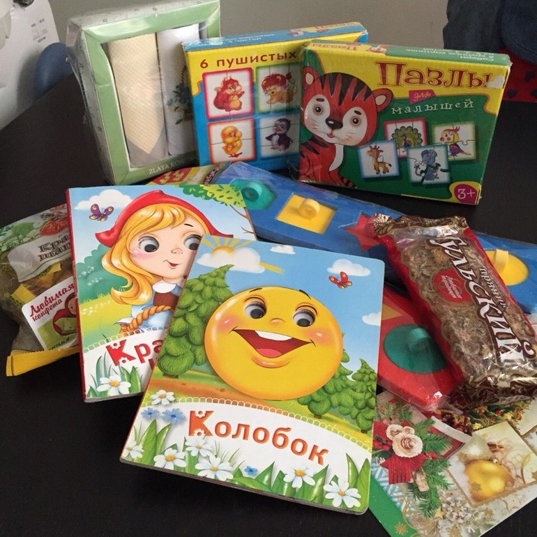 ПраздникиУтром в Рождество нам пришла посылочка. Так кстати! А какие подарочки нас там ждали. Досадно, что детки пока не могут оценить атмосферу праздника.