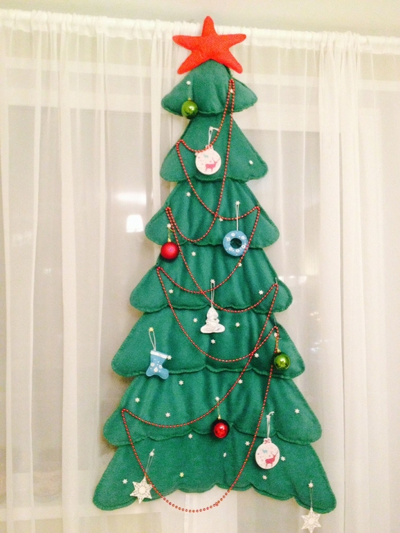Позитив =)Вот пришло время и мне сказать: это моя новогодняя елка! Может конечно не совсем традиционная, но ввиду нескольких обстоятельств (вернее двух, широко известных узкому кругу лиц))), в этом году пока так. Задумала ее сделать еще в сентябре, в октябре купила ткань, но руки и воображение только во второй декаде декабря, с уже поджимающими сроками (как обычно и бывает в моей жизни) заставили приступить к сию творению. Кроила, переводила на ткань, вырезала, шила и набивала пушистым наполнителем по ночам. И это не от лени или нечего заняться ночью, а от острой необходимости и неизбежности прихода главного праздника в мой дом. В следующем году надеюсь на искусственную антивандальную красавицу, жалко мне настоящие елки, которые выращивают и рубят ради двух недель запаха и "якобы особого настроения". Конечно в саму новогоднюю ночь у меня будет наряжена настоящая елка, и еще наверное ель, под окном, и искусственная дома. Так что праздничное настроение приходит и в мой дом. Всех с наступающим!!!