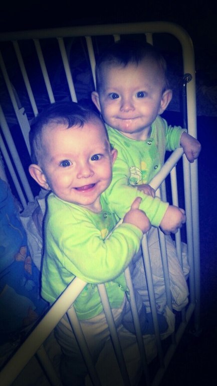 Двойняшки до 1 годаНу вот нам уже и 10 мес, даже не вериться что столько времени уже прошло.. Растут мои девчонки быстро, не по дням, а по часам каждый день что то новенькое)) Мы уже много чего знаем и любим, у нас есть любимый большой мишка, это наверное единственная игрушка из за которой мы не деремся, он настолько большой что его хватает на двоих))) Ползать мы научились уже давно, и сейчас расползаемся в разные стороны как по команде, да так что не поймаешь)) Правда Эмилька ползает как положено, а вот Альвиша только по пластунски, но в скорости она сестре не уступает)) Ну и чуть чуть нас))