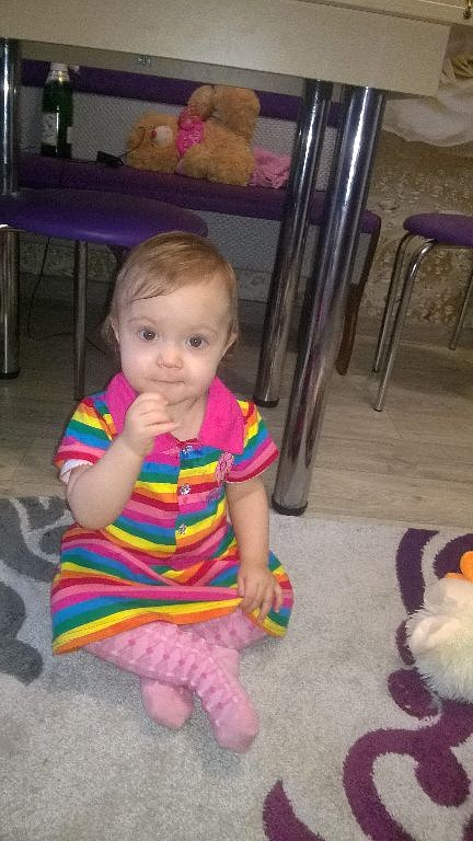 Вот так мы росли .И что мы имеем к нашему годовасию,а имеем мы собственно по 10 кг. веса ,по 74 см. роста. Ульяша ползает бегом,что не догонишь,не топает,иногда делает пару робких шажочков.8 зубов,говорит мама папа баба дядя ,мяу,ням ням,залазит сама на диван и слазит ,ладушки,привет машет и пока,буськи всем раздаёт,танцует стоит только музыку услышать,пирамидки собирает,помогает мне собирать игрушки ещё много всего ,всего сразу и не вспомнишь.